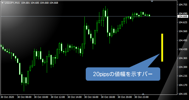 指定pips分の値幅を示すバーをチャート上に表示 インジケーター 電子書籍 投資戦略 トレード手法 相場分析 ツール 自動売買等の流通プラットフォーム Gogojungle